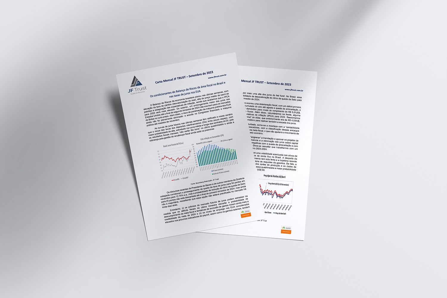 O Balanço de Riscos da economia brasileira piorou nas últimas semanas, com elevação da taxa de câmbio (desvalorização do real), alta do preço médio do barril do petróleo e estagnação das expectativas de inflação, sendo que avaliamos que o IPCA para 2024 será mais elevado. Do exterior, um prolongamento maior dos juros nos Estados Unidos até o final do segundo trimestre de 2024 não soa bem para os mercados de Bolsa no curto prazo. Além disso, o risco de paralisação da máquina pública dos EUA ainda não foi plenamente eliminado: o acordo no Congresso financiará a máquina pública até meados de novembro.