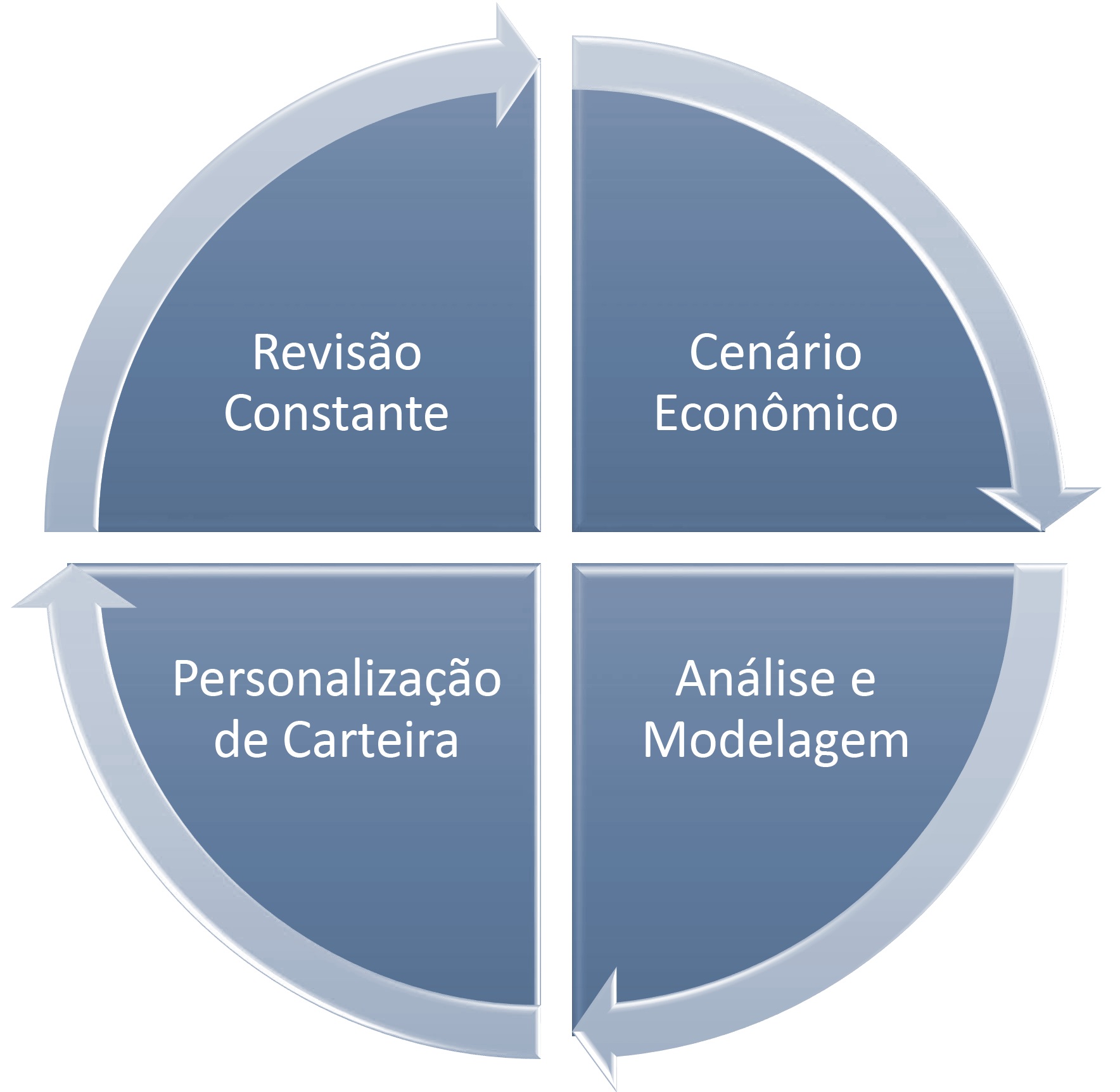 É um processo cíclico, onde as carteiras são monitoras e ajustadas conforme os cenários previstos.