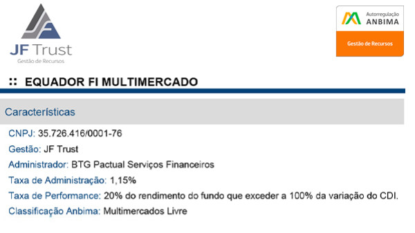 O investidor delega a administração dos recursos a Equador Investimentos, que seguirá a política de investimento acordada entre as partes.